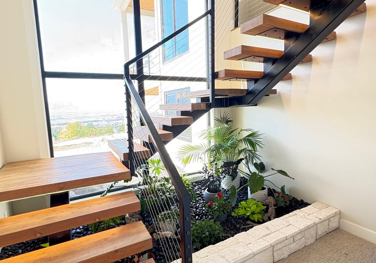 Create a unique and beautiful focal point for your space. Whether floating steps, single stringer, or double stringer we can transform a necessity into a piece of art.
